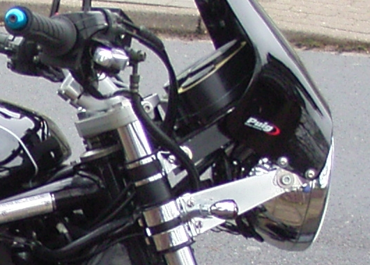 Zum Schutz von Fahrer und Instrumenten hab ich noch eine kleine Scheibe montiert und das Ergebnis sieht nun so aus: