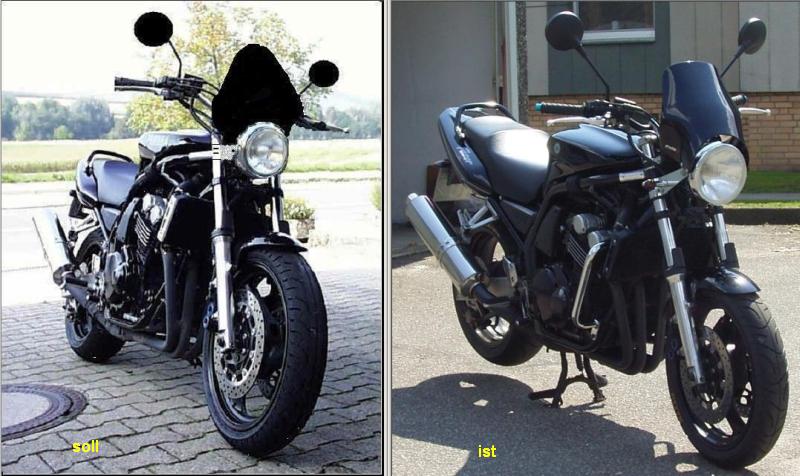 Eine Fazer wäre natürlich das passende, aber Fazer gabs (Ende 2005) nicht unter 2000EUR und für CB500 und GPZ500 wurden in vertretbarem Zustand irrationale Preise aufgerufen.